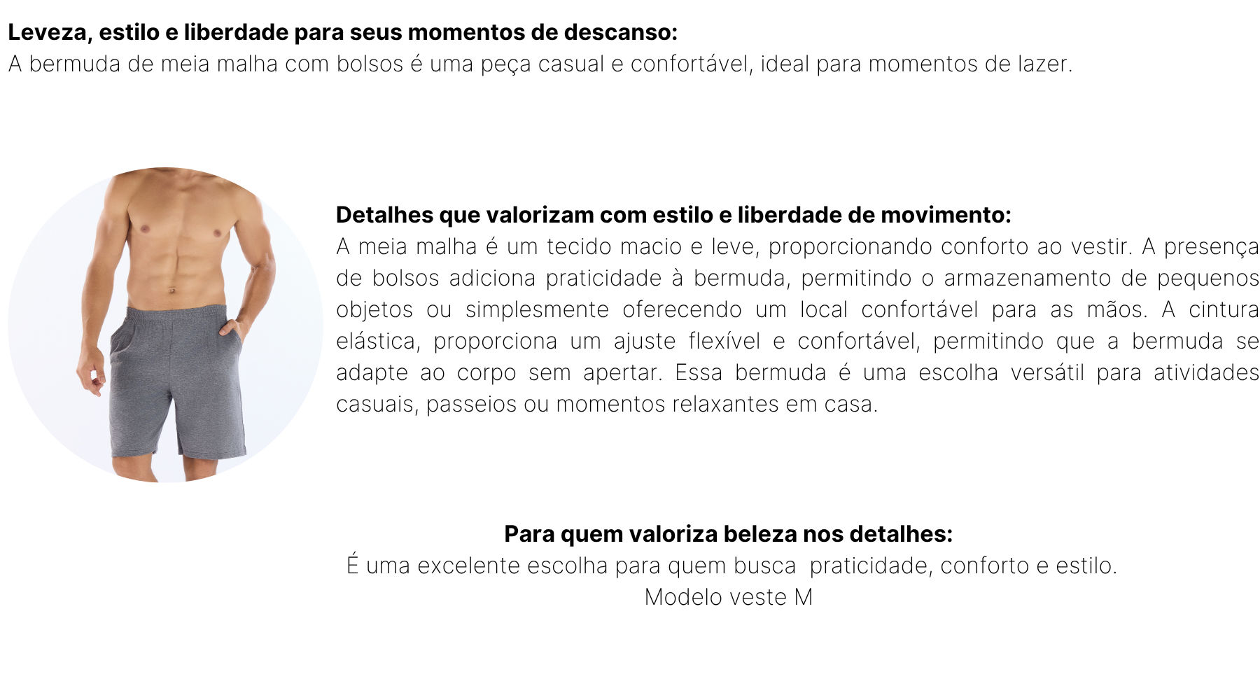 BERMUDA MASCULINA COM BOLSOS EM MEIA MALHA