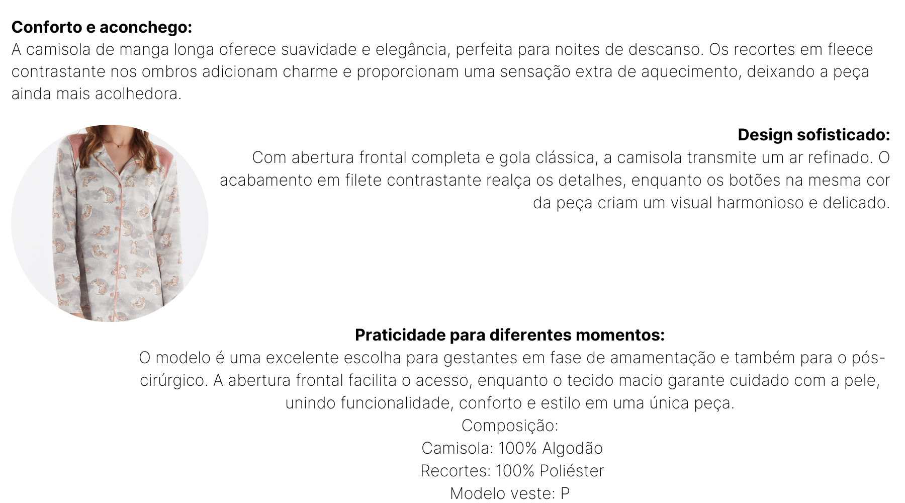 CAMISOLA MANGA LONGA ABERTURA FRONTAL EM MALHA ROTATIVA FEMININO