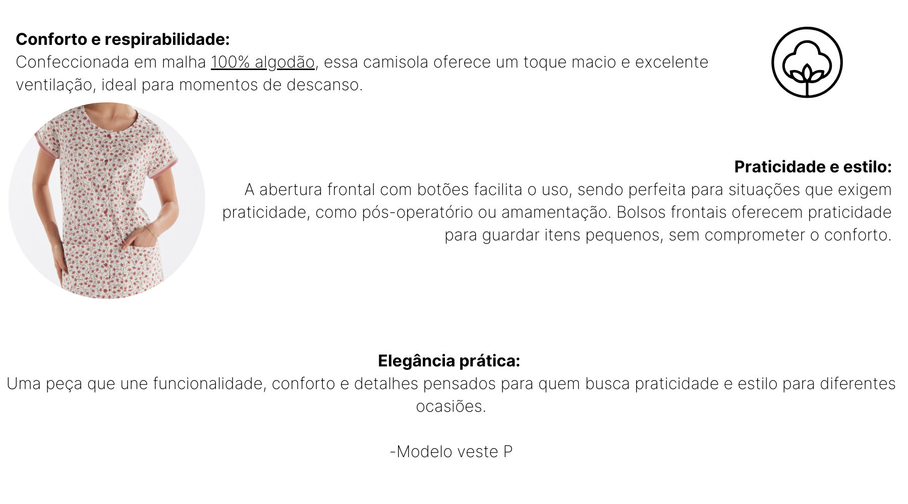 CAMISOLA MEIA MANGA ABERTURA FRONTAL EM MALHA RORATIVA FEMININO