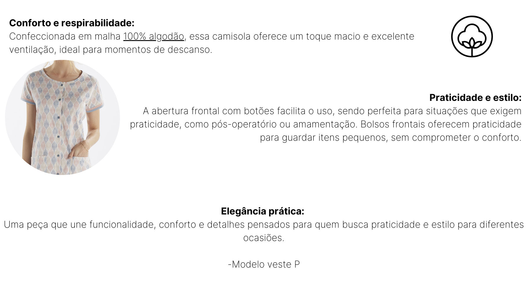 CAMISOLA MEIA MANGA ABERTURA FRONTAL EM MALHA RORATIVA FEMININO