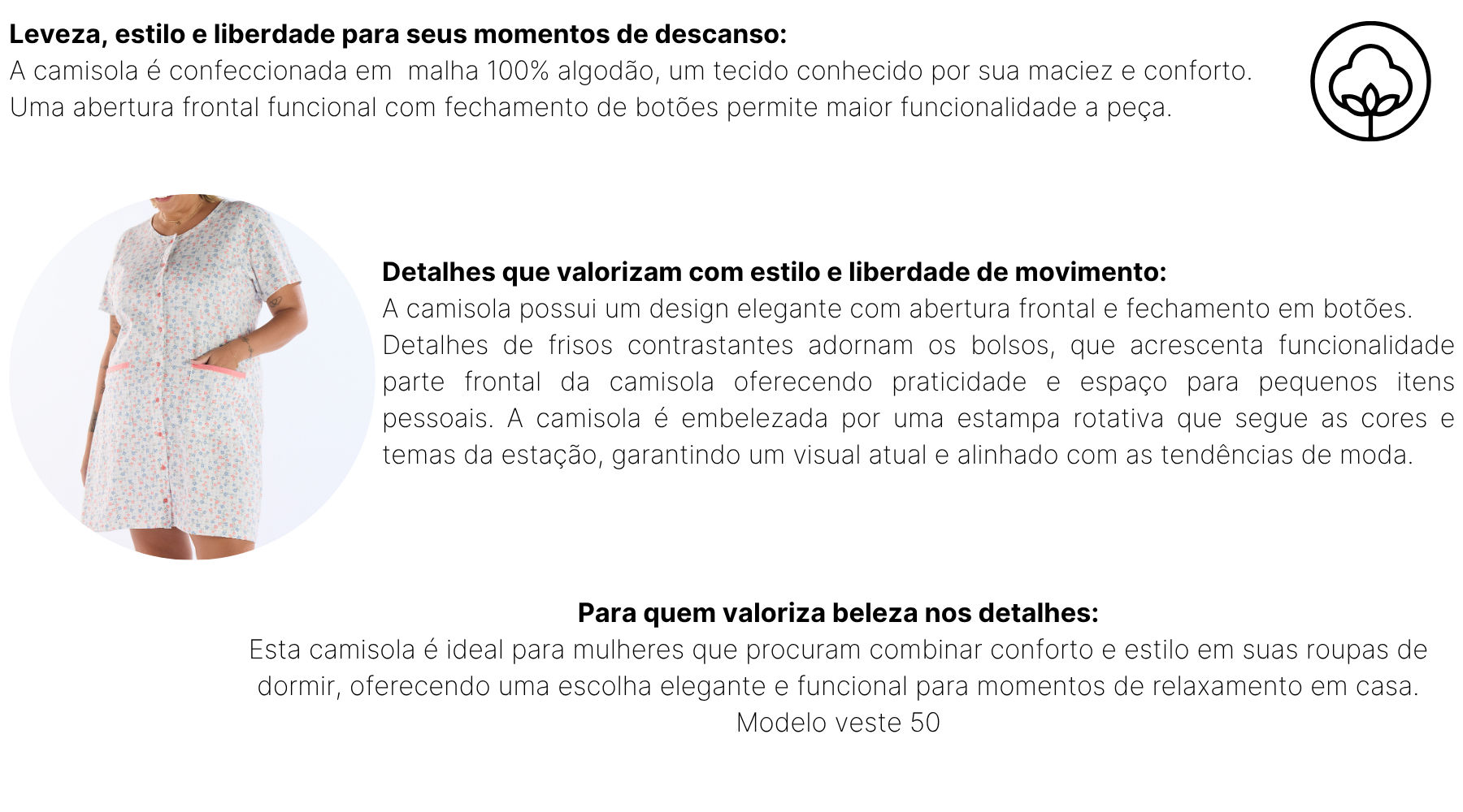 Início PLUS SIZE CAMISOLA MEIA MANGA ABERTURA FRONTAL EM MALHA ROTATIVA FEMININO