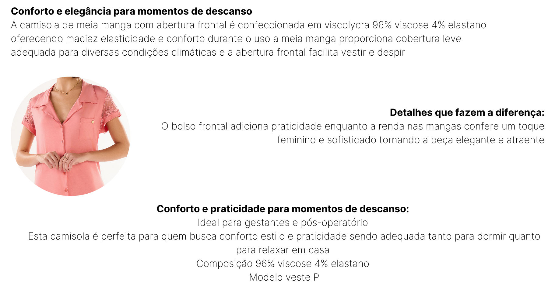 CAMISOLA MEIA MANGA ABERTURA FRONTAL EM VISCOLYCRA FEMININO