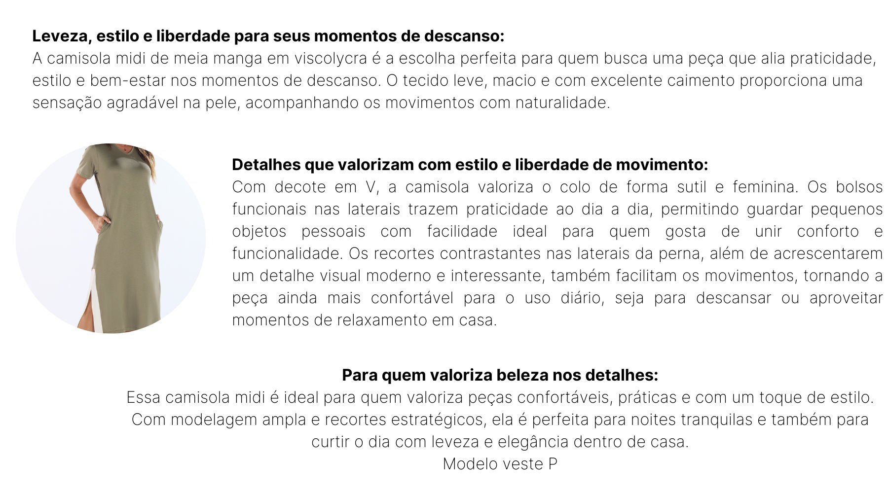 CAMISOLA MEIA MANGA EM VISCOLYCRA FEMININO