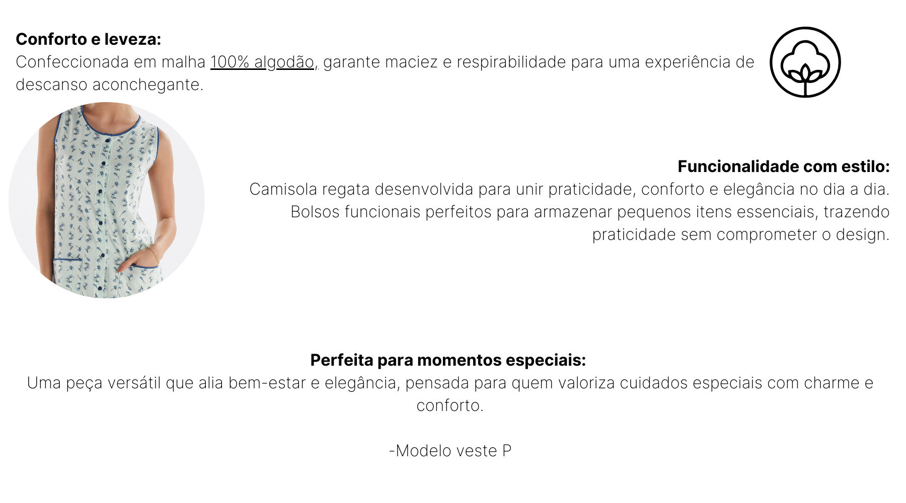 Walzita, obrigada por nos contar como foi sua experiência. Sinto muito que o caimento não tenha ficado ideal para você na parte superior e inferior da peça. Quero te ajudar a ficar 100% satisfeita, então se quiser orientações de tamanho ou preferir solicitar a troca, estamos à disposição com todo carinho. 💙✨