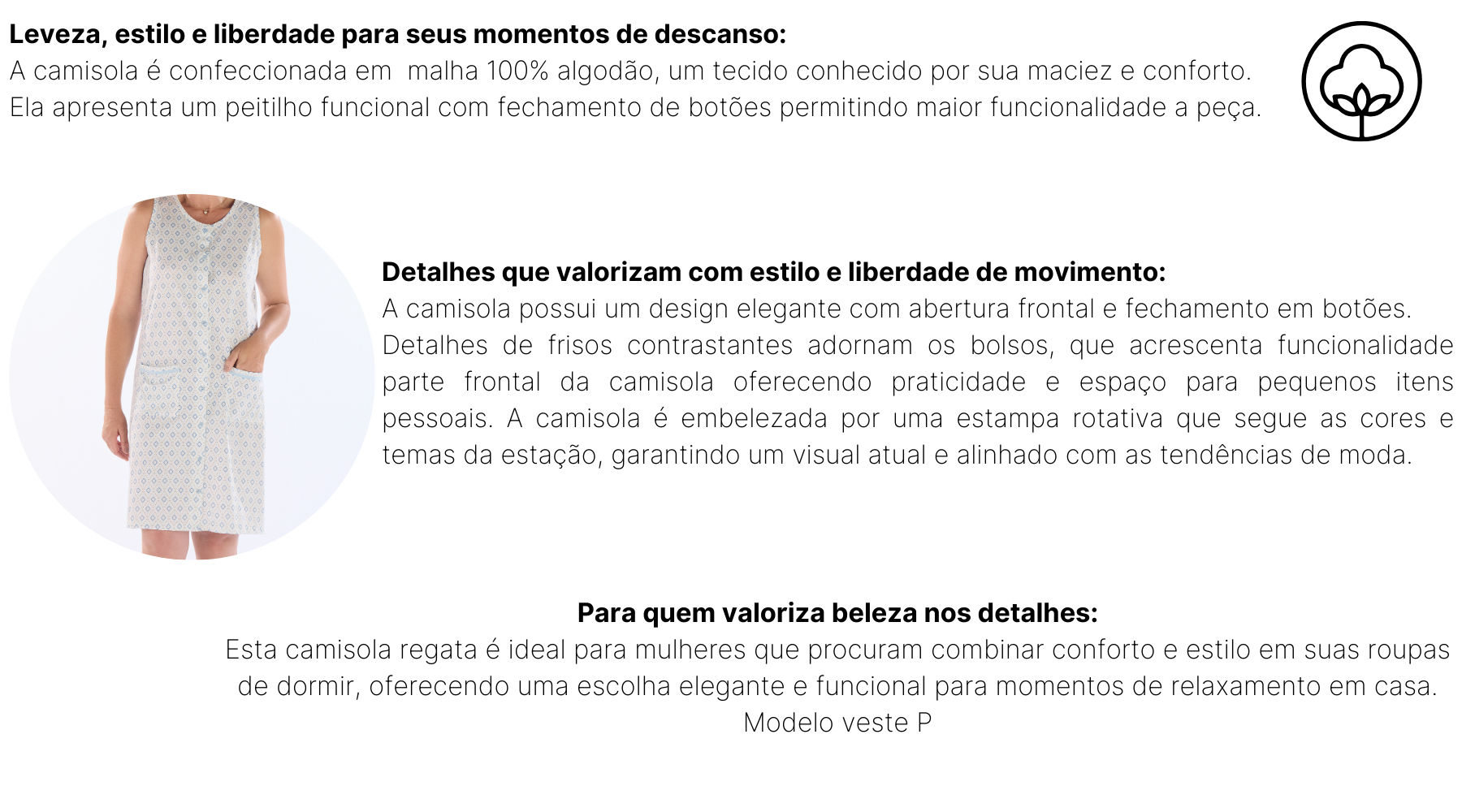 CAMISOLA REGATA ABERTURA FRONTAL EM MALHA ROTATIVA FEMININO