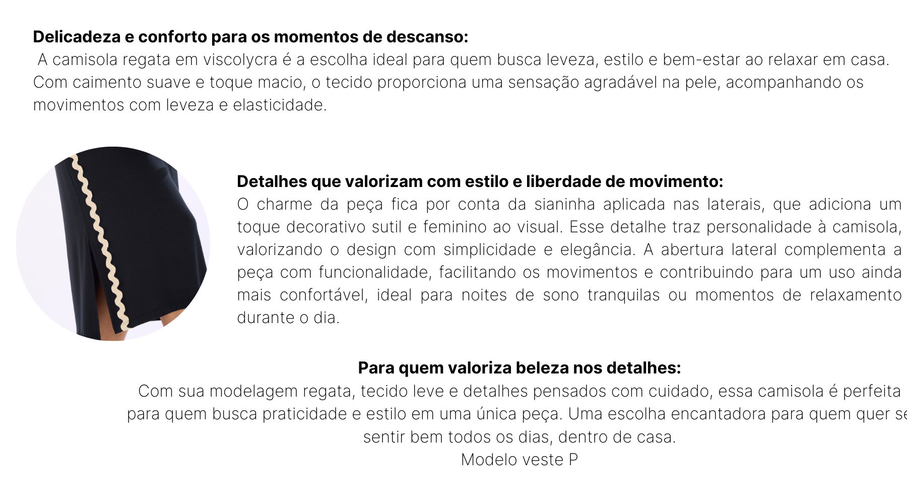 Martha, que alegria saber que a camisola serviu perfeitamente! 🌸 Ficamos felizes que você tenha gostado da maciez e do conforto da malha. Muito obrigada pelo carinho 💛