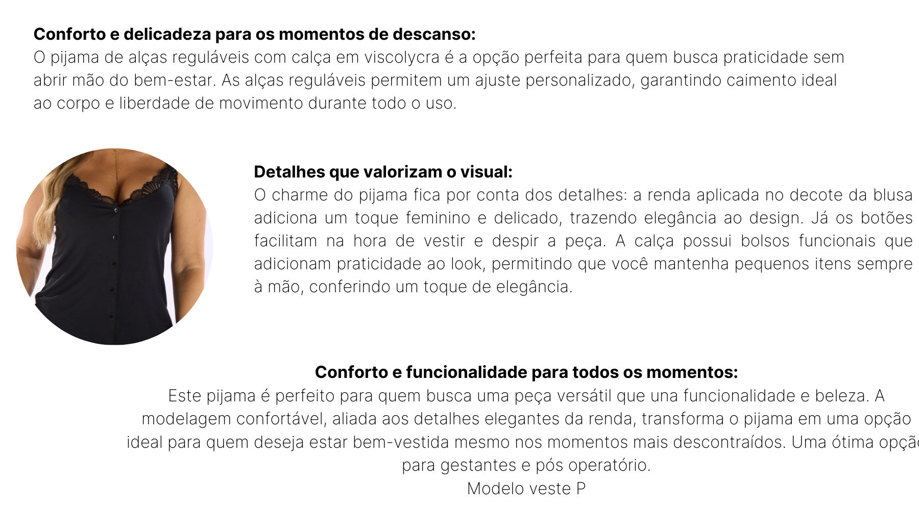 Início FEMININO PIJAMA ALCAS AB. FRONTAL COM CALCA EM VISCOLYCRA FEMININO