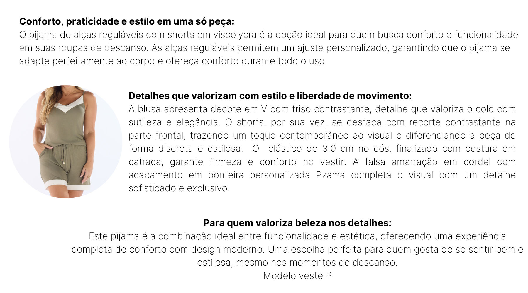 PIJAMA ALCAS COM SHORTS EM VISCOLYCRA FEMININO