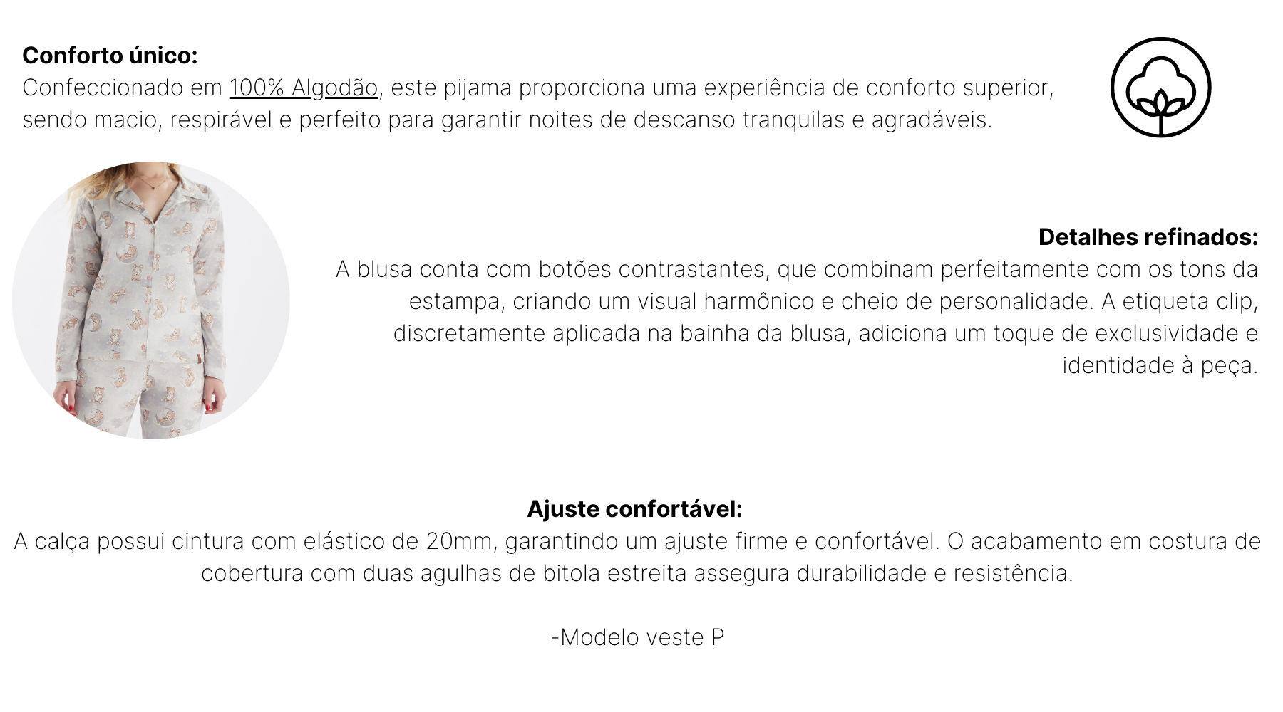 PIJAMA MANGA LONGA ABERTURA FRONTAL COM CALCA EM MALHA ROTATIVA FEMININO