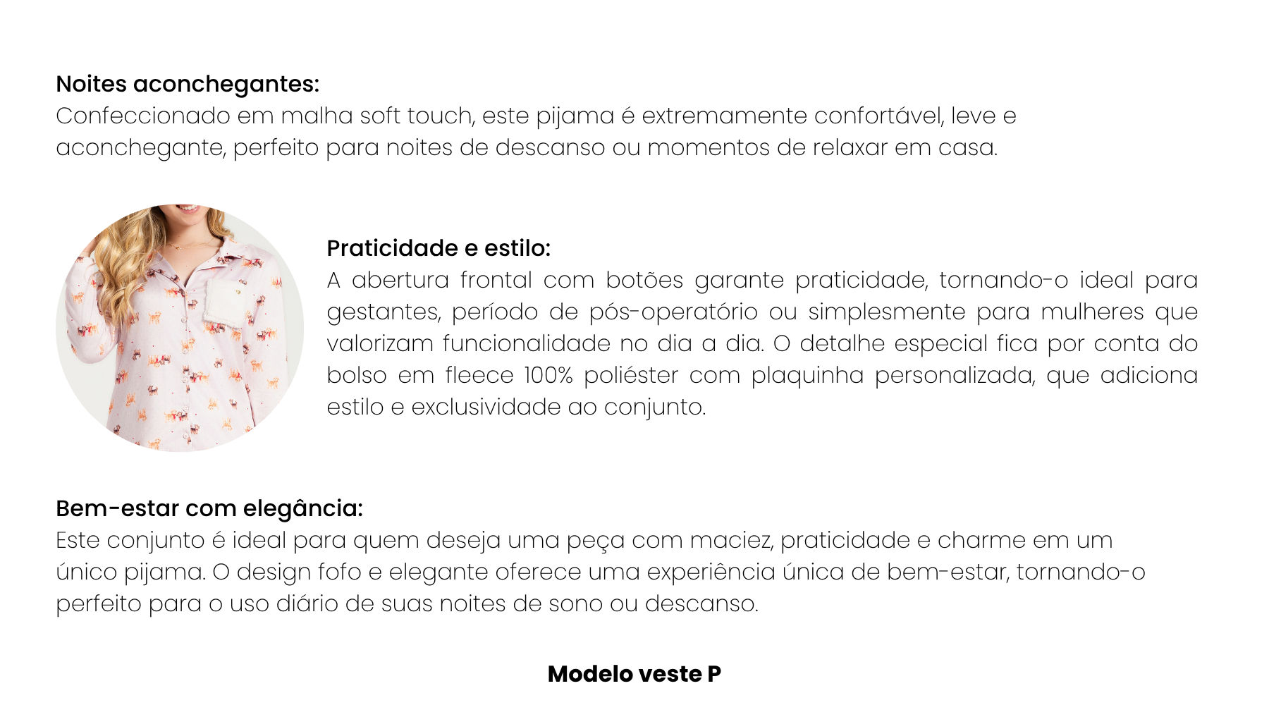 PIJAMA MANGA LONGA ABERTURA FRONTAL COM CALCA EM MALHA SOFT TOUCH FEMININO