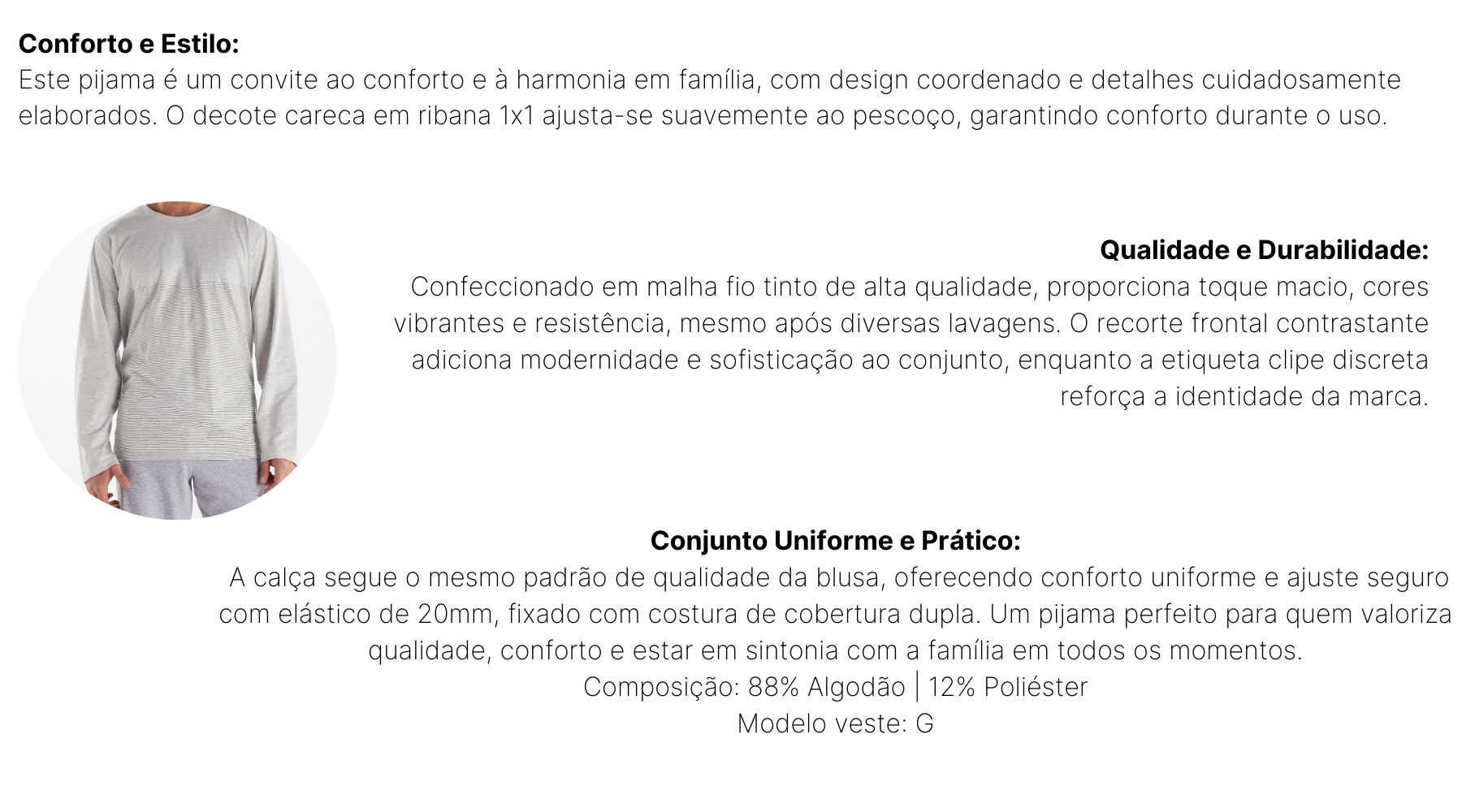 PIJAMA MANGA LONGA COM CALCA EM MEIA MALHA MASCULINO