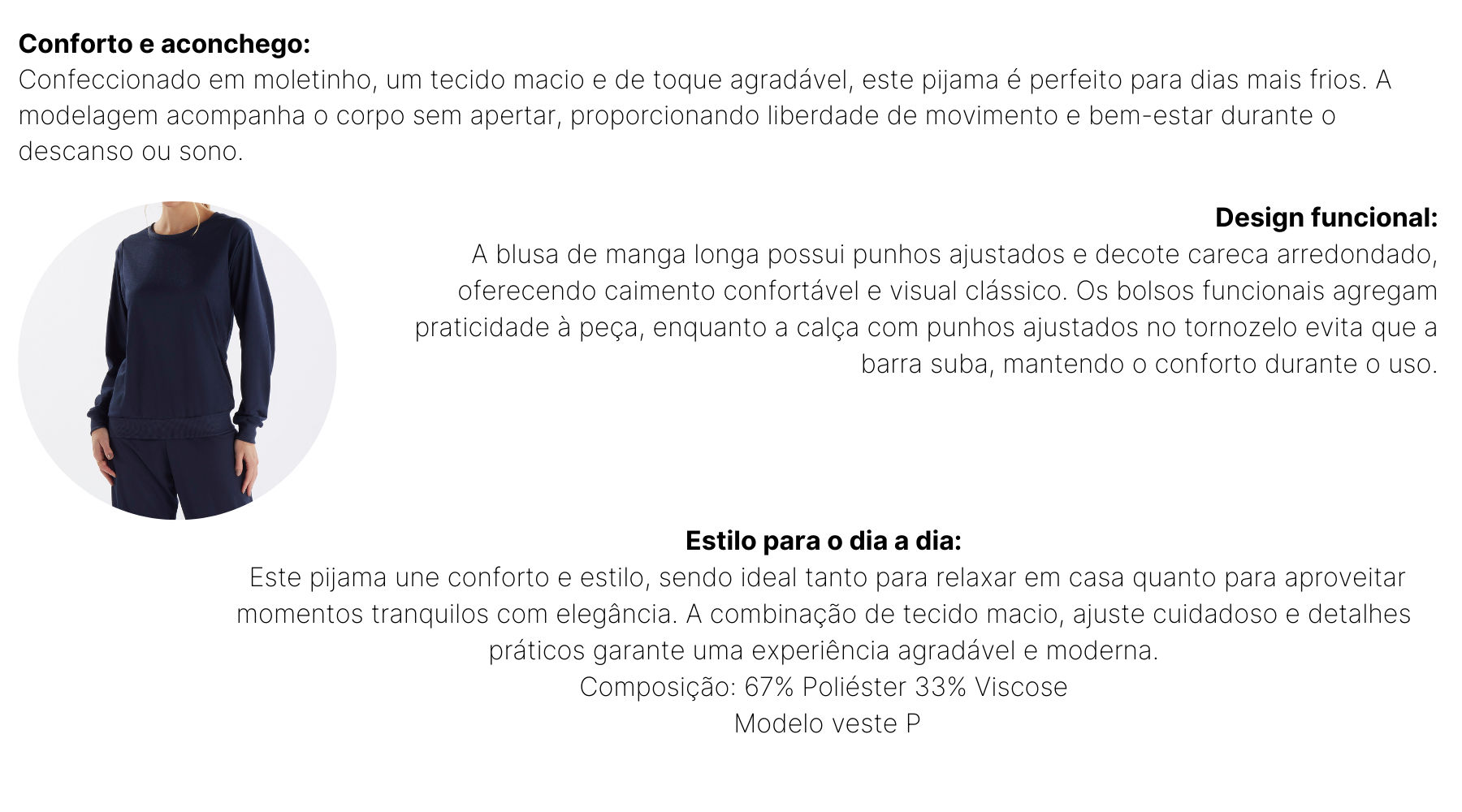 Início FEMININO PIJAMA MANGA LONGA COM CALCA EM MOLETINHO CARECA FEMININO