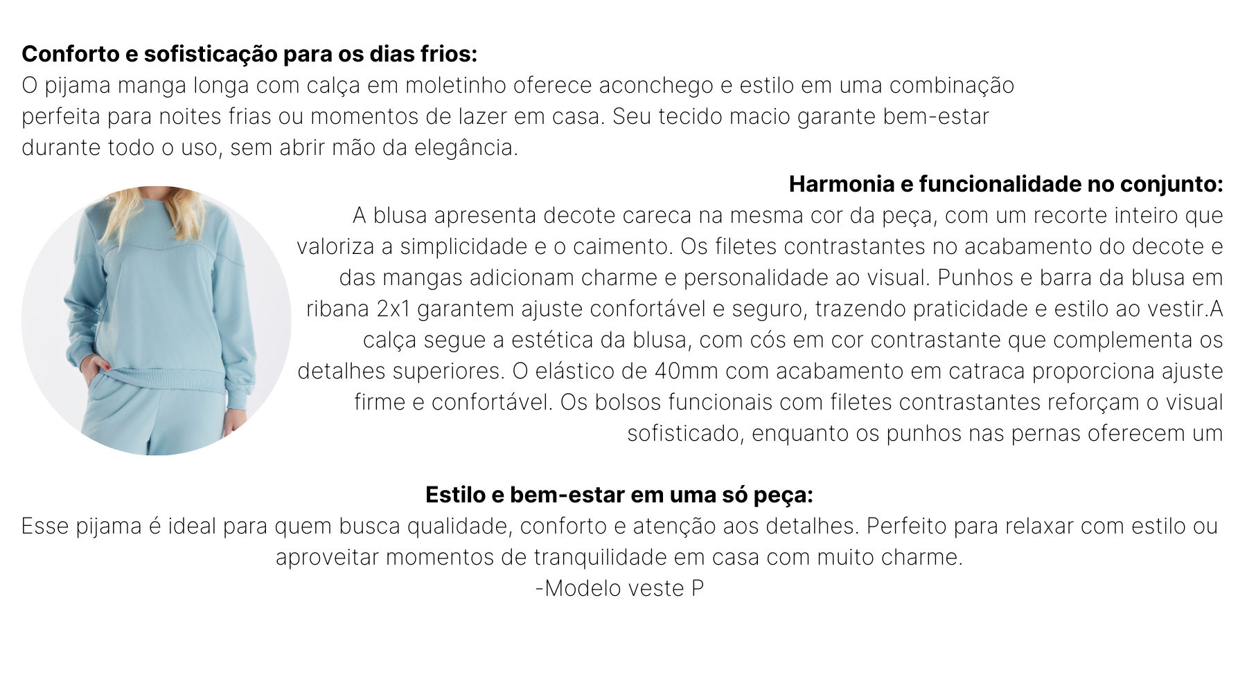 PIJAMA MANGA LONGA COM CALCA EM MOLETINHO FEMININO