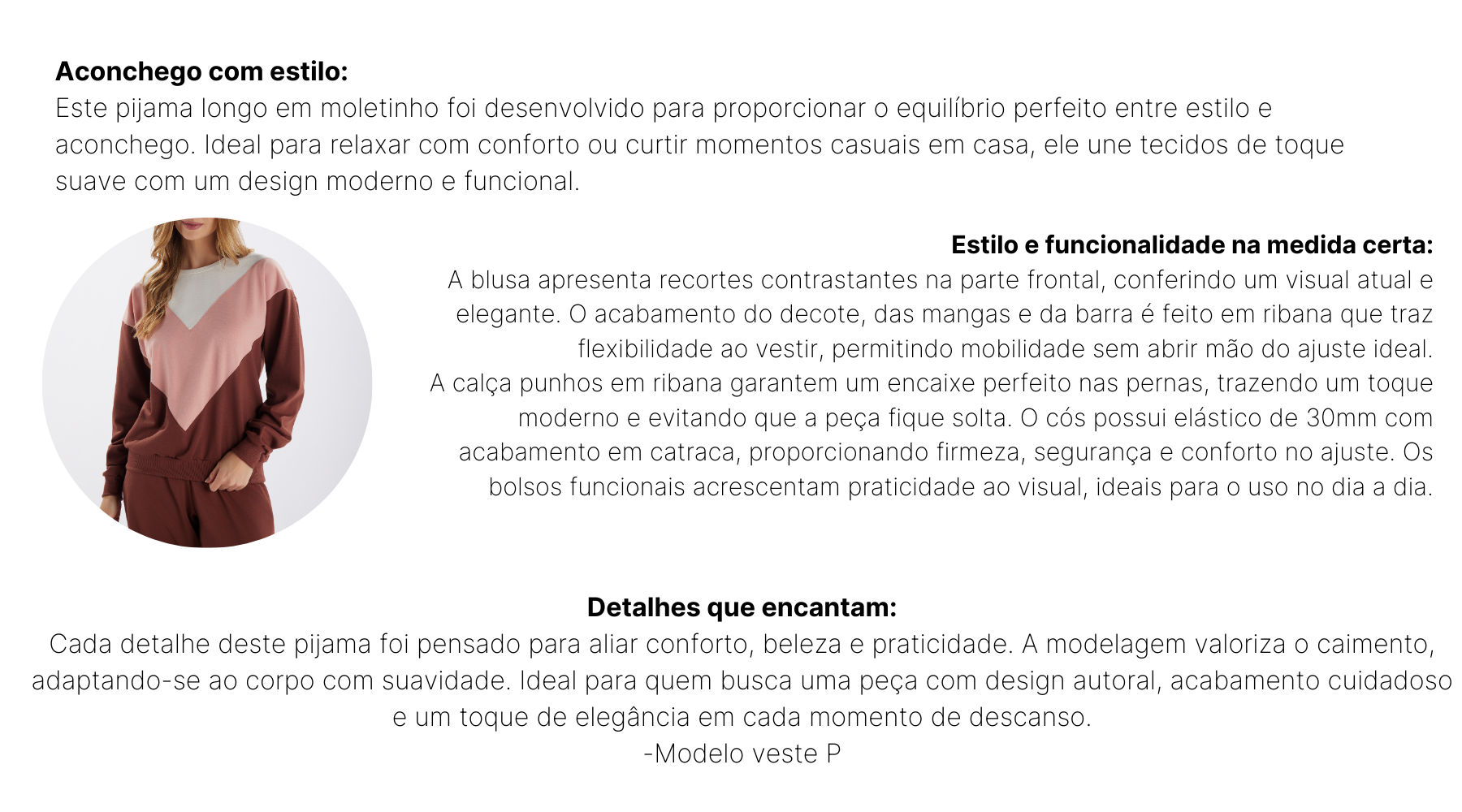 PIJAMA MANGA LONGA COM CALCA EM MOLETINHO FEMININO