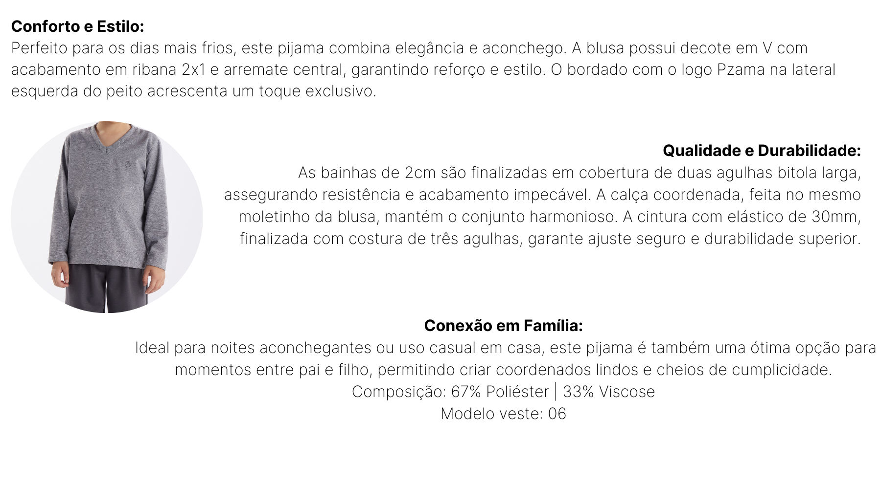 PIJAMA MANGA LONGA DECOTE V COM CALCA EM MOLETINHO MASCULINO
