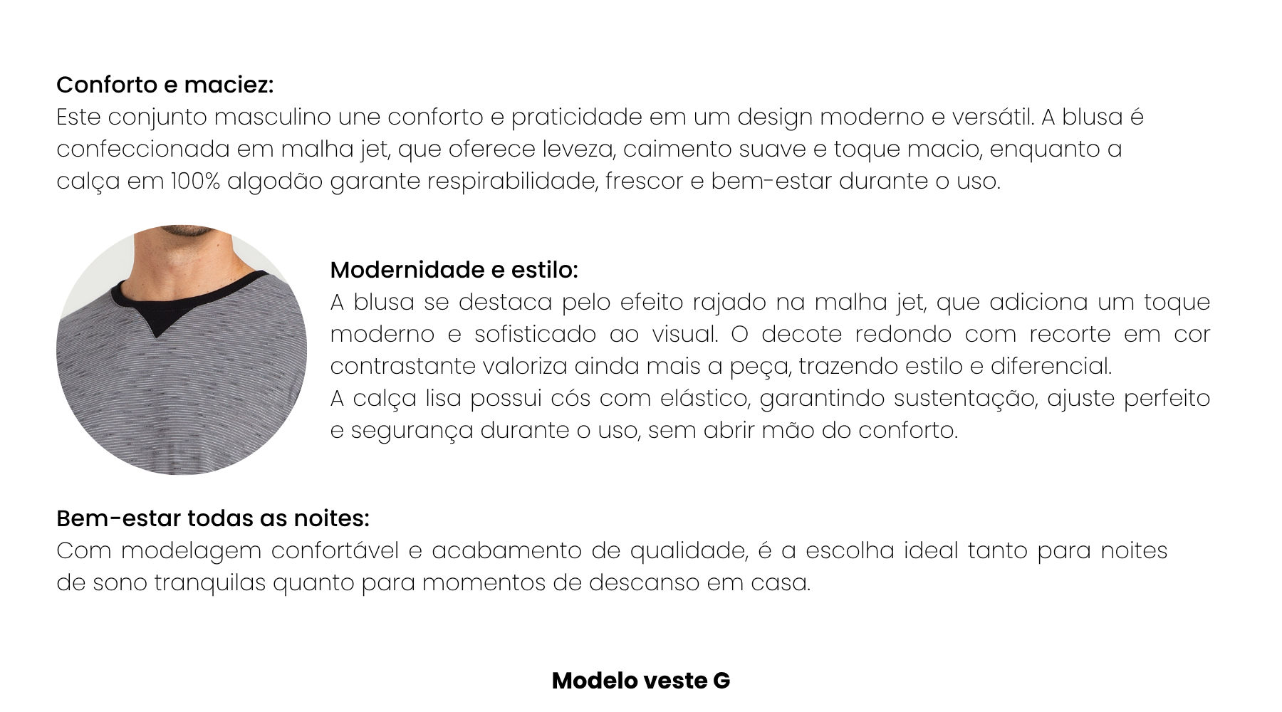 PIJAMA MANGA LONGA EM MALHA JET COM CALCA EM MEIA MALHA MASCULINO
