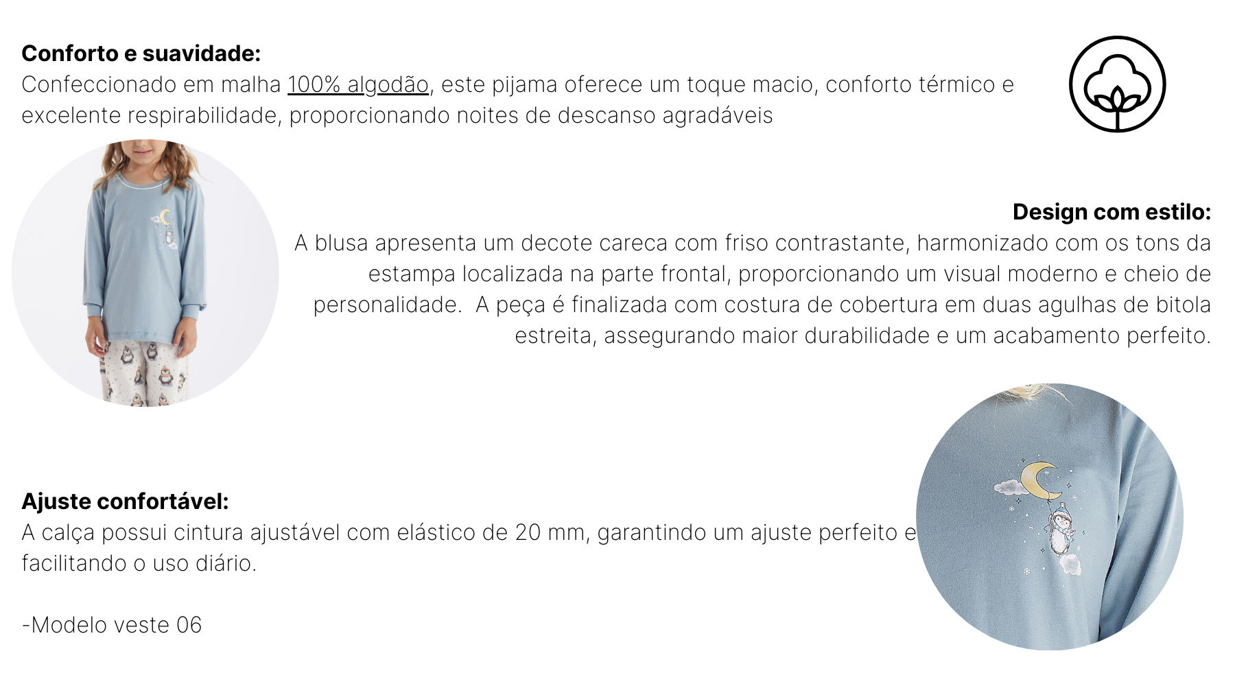 Início KIDS PIJAMA MANGA LONGA EM MEIA MALHA COM CALCA EM MALHA ROTATIVA FEMININO