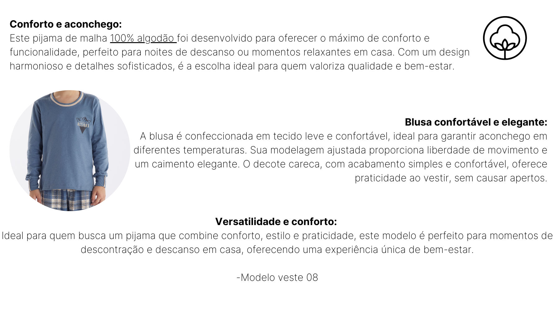 PIJAMA MANGA LONGA EM MEIA MALHA COM CALCA EM MALHA ROTATIVA MASCULINO