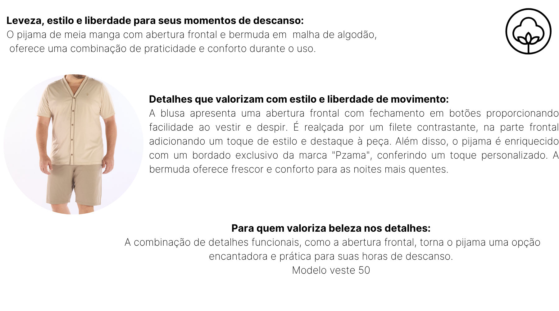 PIJAMA MEIA MANGA ABERTURA FRONTAL COM BERMUDA EM MEIA MALHA MASCULINO