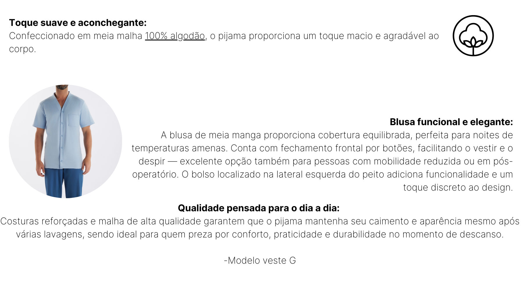Início MASCULINO PIJAMA MEIA MANGA ABERTURA FRONTAL COM CALCA EM MEIA MALHA MASCULINO