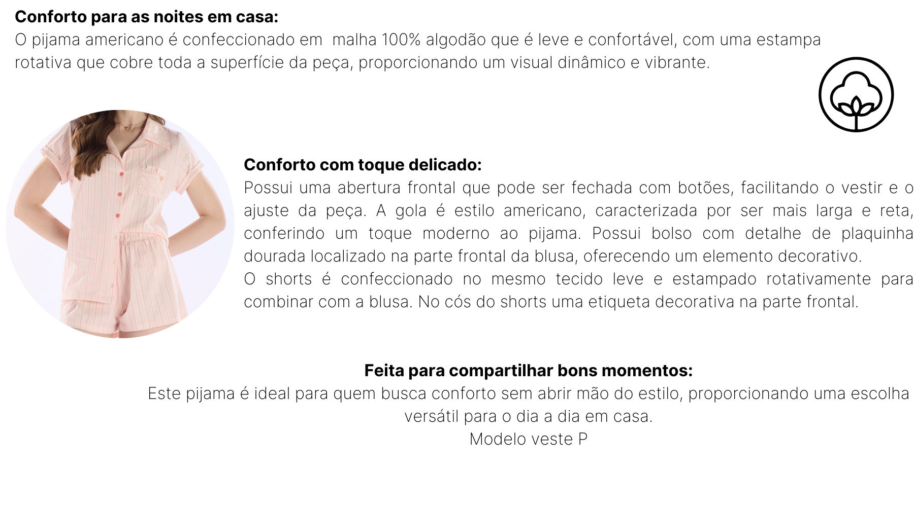 PIJAMA MEIA MANGA ABERTURA FRONTAL COM SHORTS EM MALHA ROTATIVA FEMININO