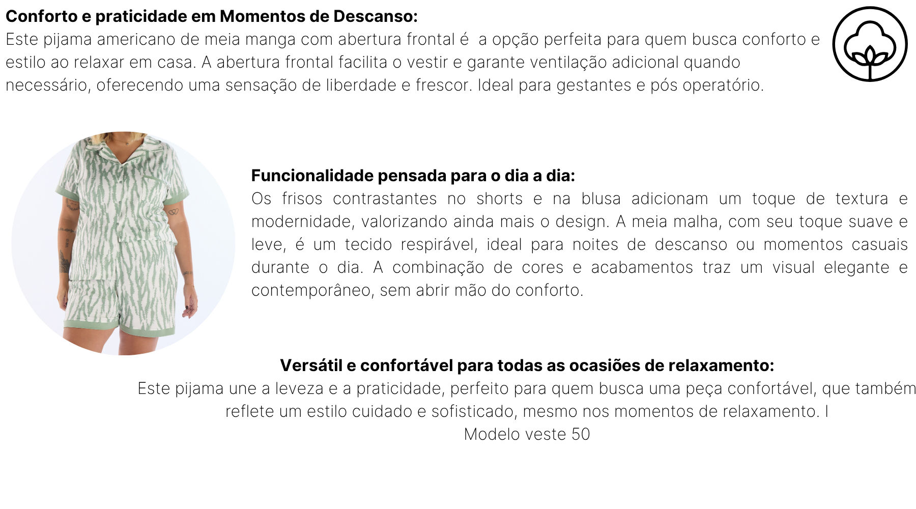 Início PLUS SIZE PIJAMA MEIA MANGA ABERTURA FRONTAL COM SHORTS EM MALHA ROTATIVA FEMININO