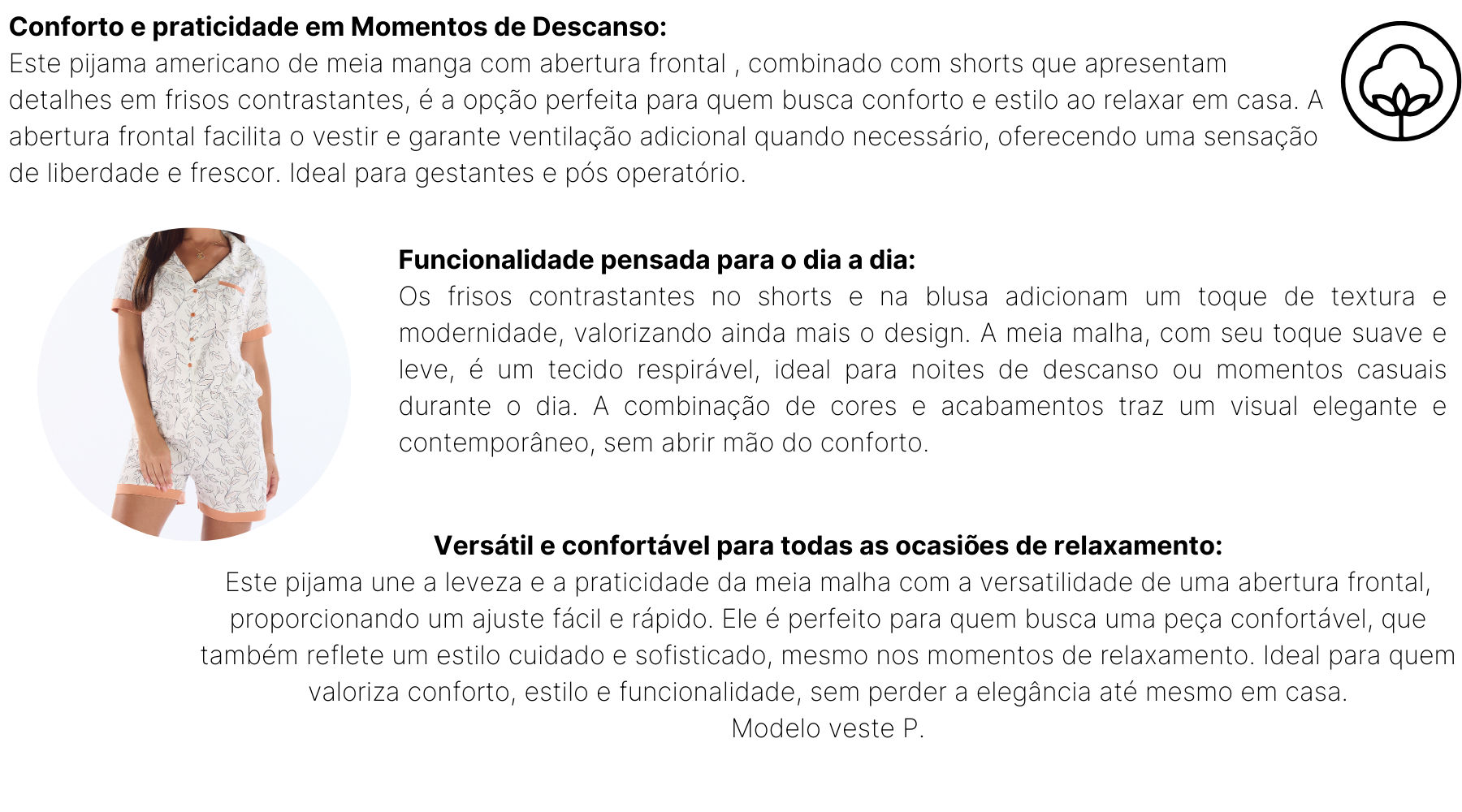 PIJAMA MEIA MANGA ABERTURA FRONTAL COM SHORTS EM MALHA ROTATIVA FEMININO