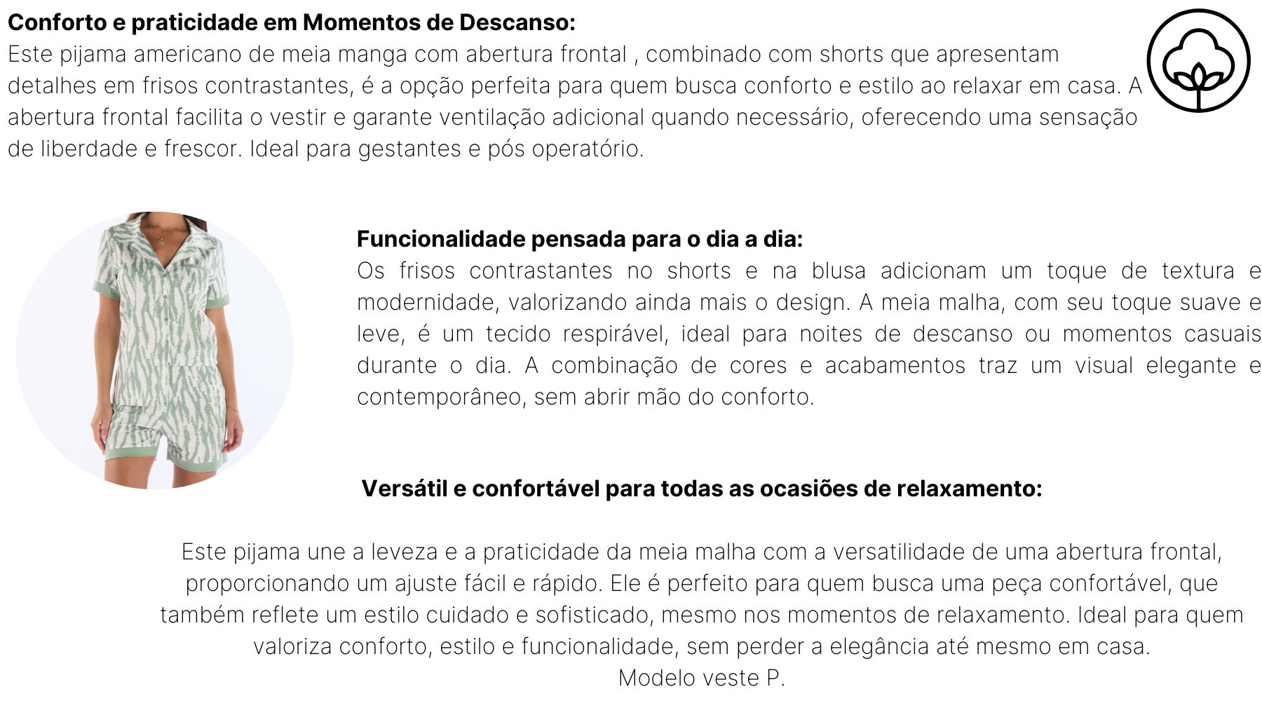 PIJAMA MEIA MANGA ABERTURA FRONTAL COM SHORTS EM MALHA ROTATIVA FEMININO