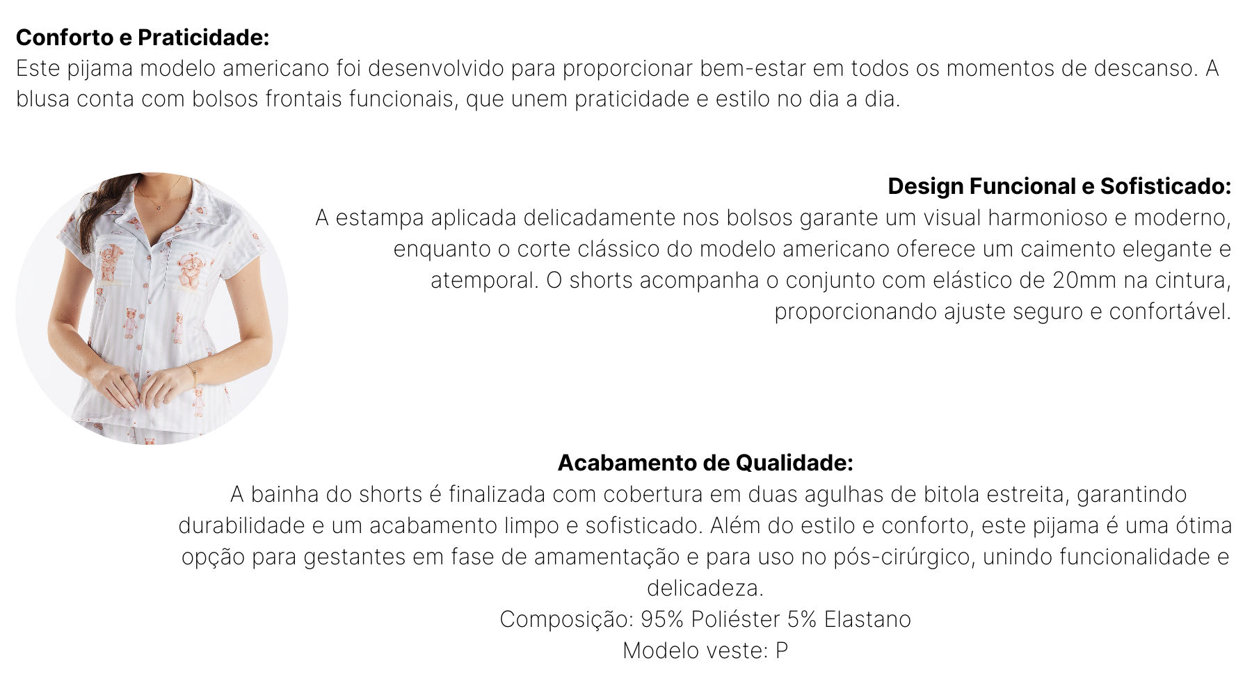 PIJAMA MEIA MANGA ABERTURA FRONTAL COM SHORTS EM MODAL SUBLIMADO FEMININO