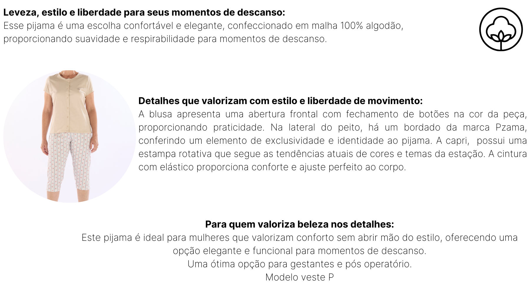 PIJAMA MEIA MANGA ABERTURA FRONTAL EM MEIA MALHA COM CAPRI EM MALHA ROTATIVA FEMININO