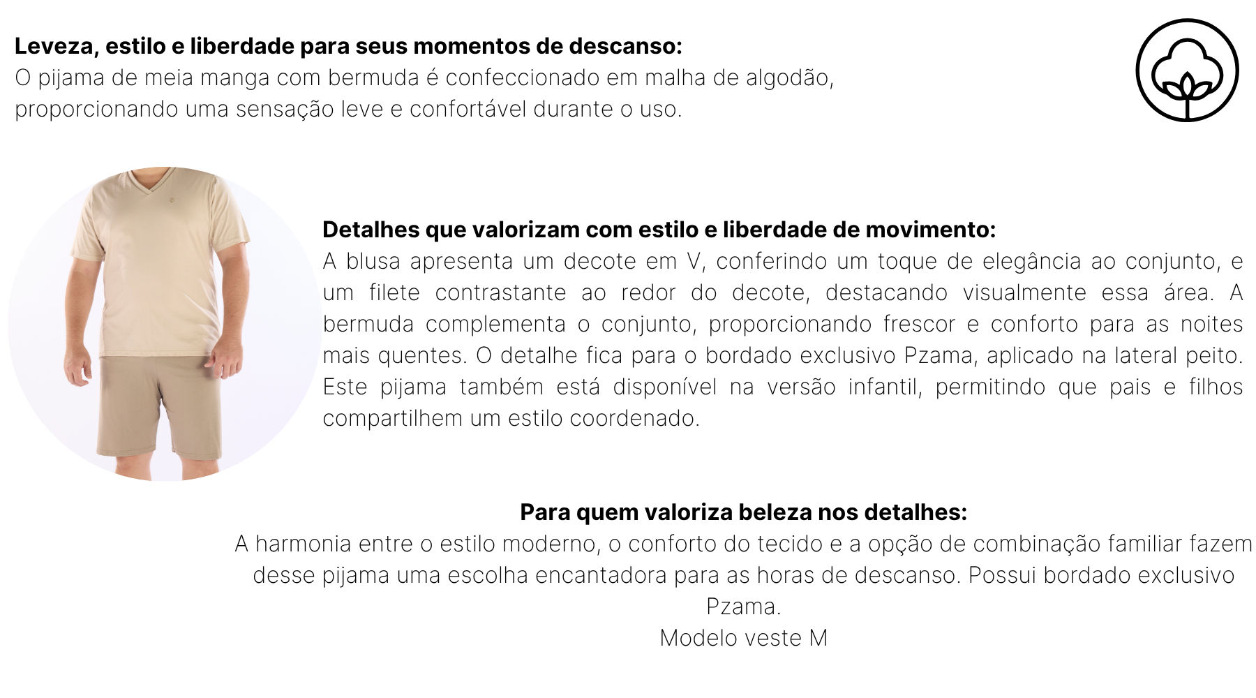PIJAMA MEIA MANGA COM BERMUDA EM MEIA MALHA MASCULINO