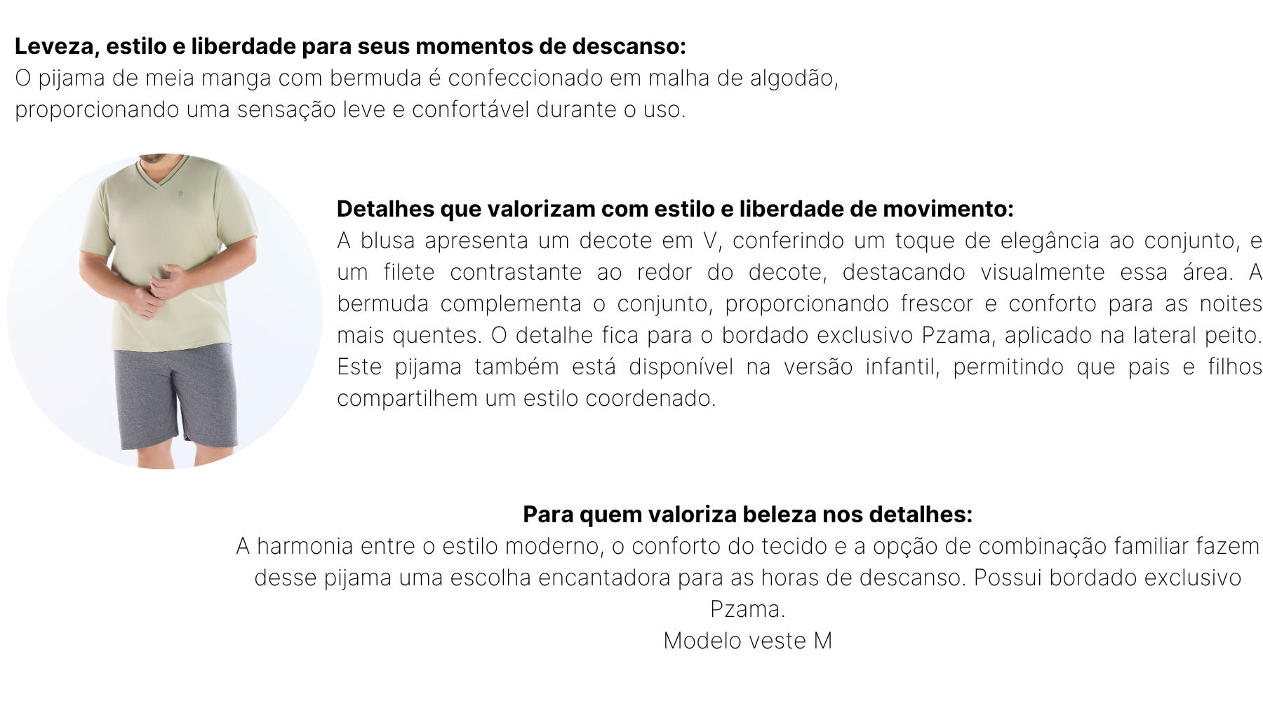 PIJAMA MEIA MANGA COM BERMUDA EM MEIA MALHA MASCULINO