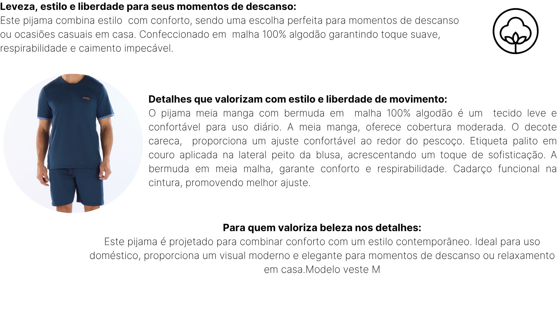 PIJAMA MEIA MANGA COM BERMUDA EM MEIA MALHA MASCULINO