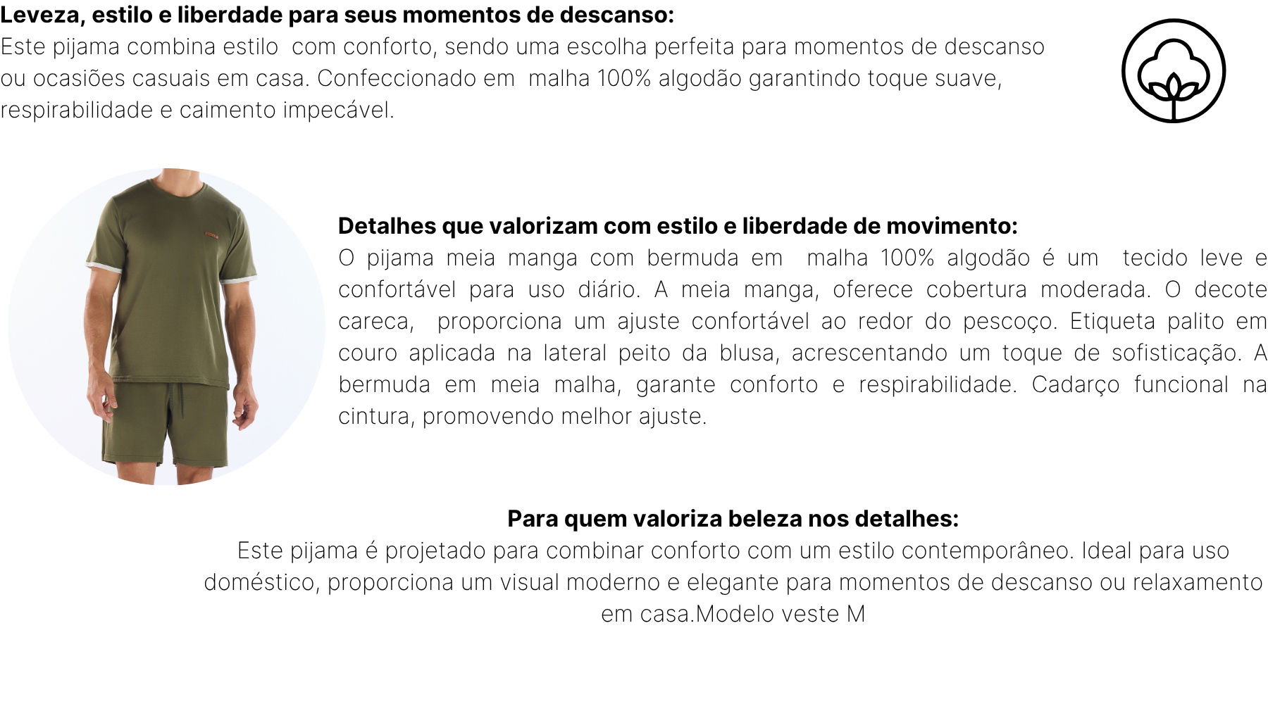 PIJAMA MEIA MANGA COM BERMUDA EM MEIA MALHA MASCULINO