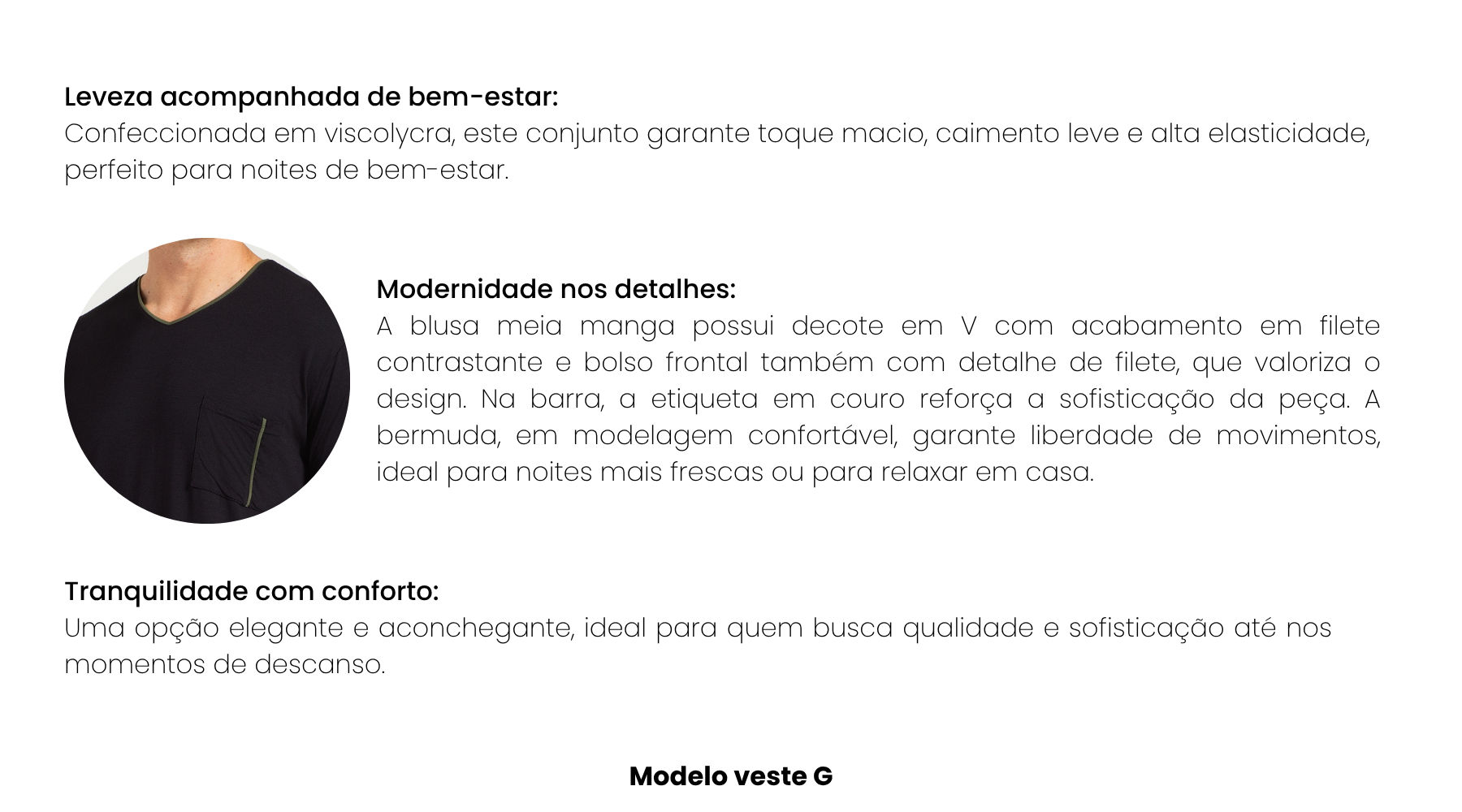 PIJAMA MEIA MANGA COM BERMUDA EM VISCOLYCRA MASCULINO