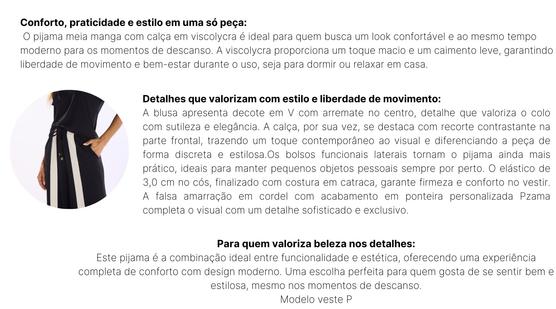 Início LINHAS PIJAMA MEIA MANGA COM CALCA EM VISCOLYCRA FEMININO