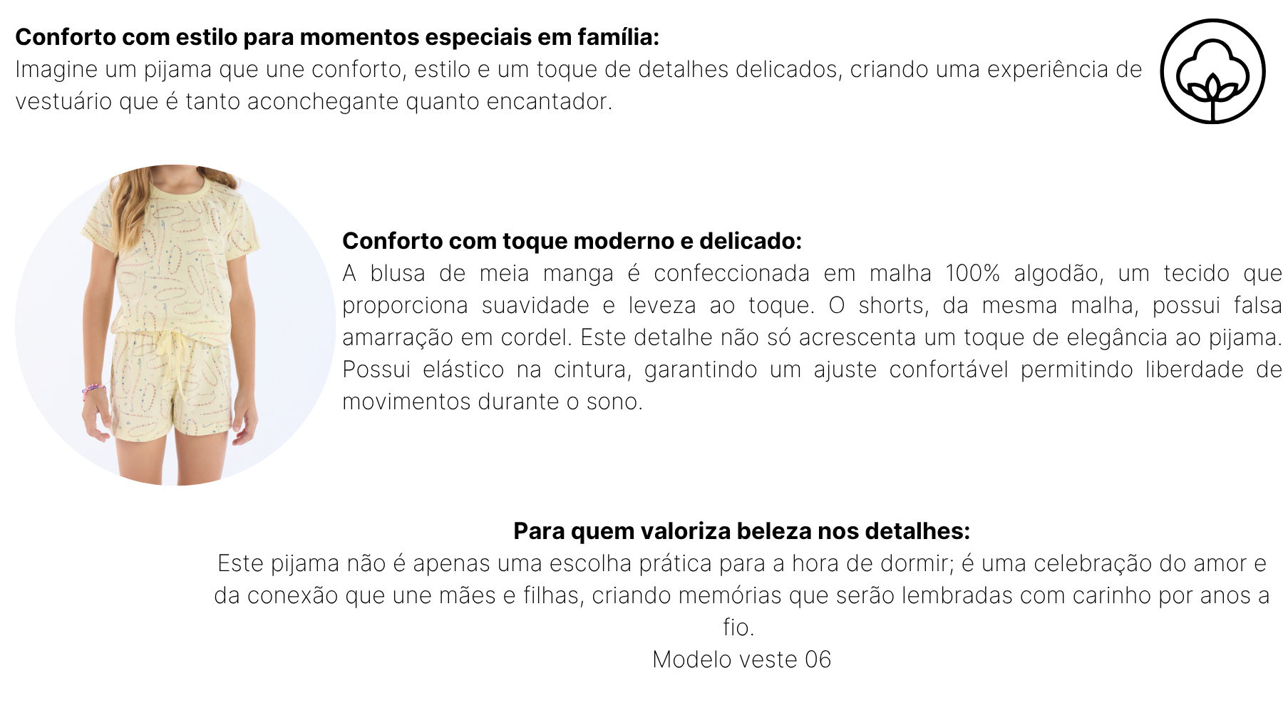 Início KIDS PIJAMA MEIA MANGA COM SHORTS EM MALHA ROTATIVA FEMININO