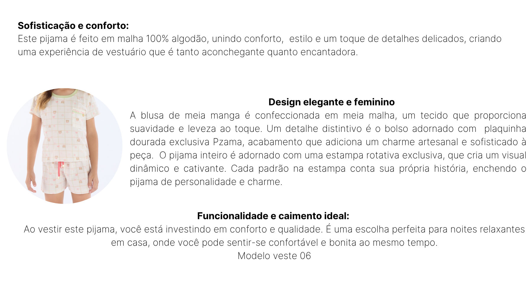 Início KIDS PIJAMA MEIA MANGA COM SHORTS EM MALHA ROTATIVA FEMININO