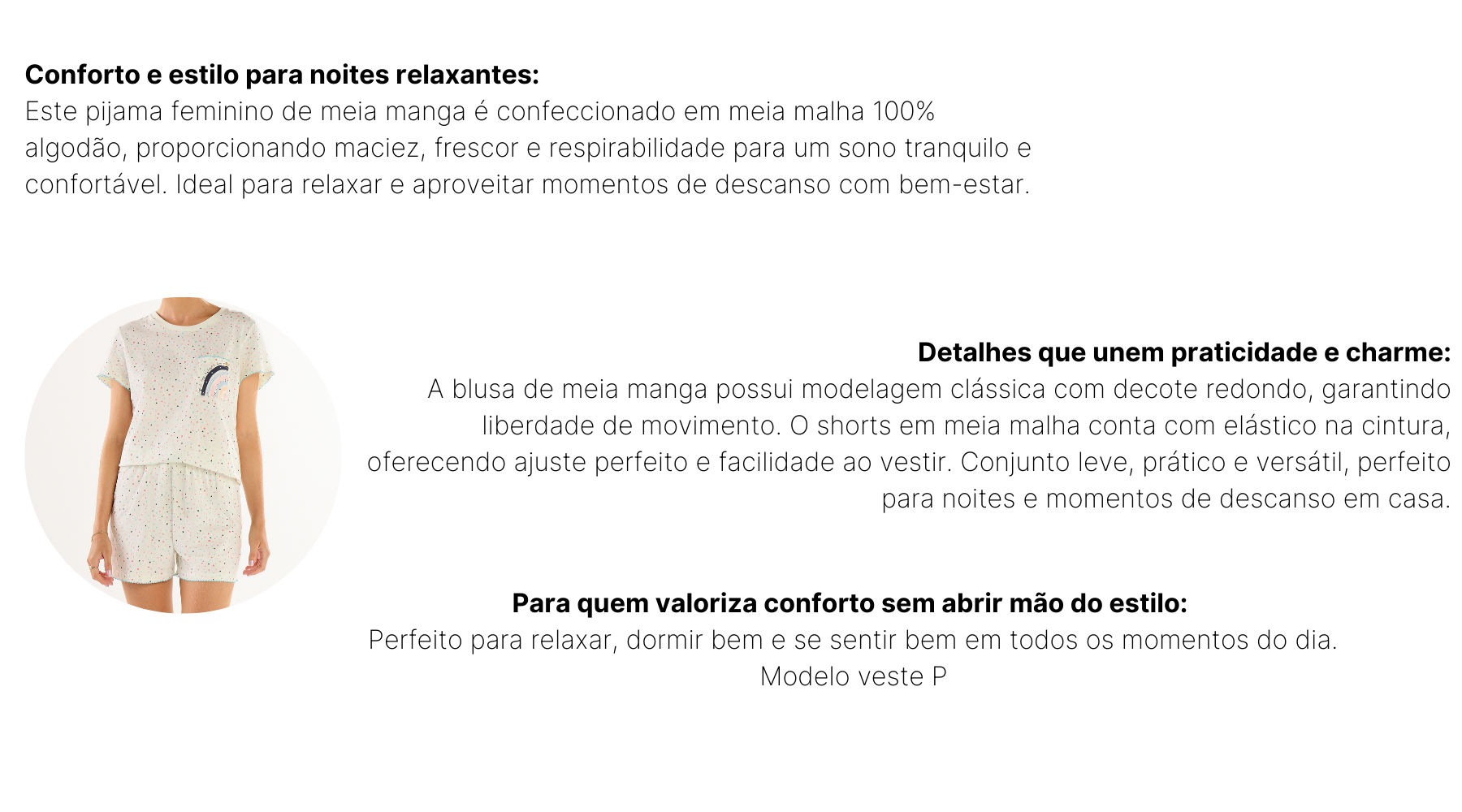 PIJAMA FEMININO MEIA MANGA COM SHORTS EM MEIA MALHA