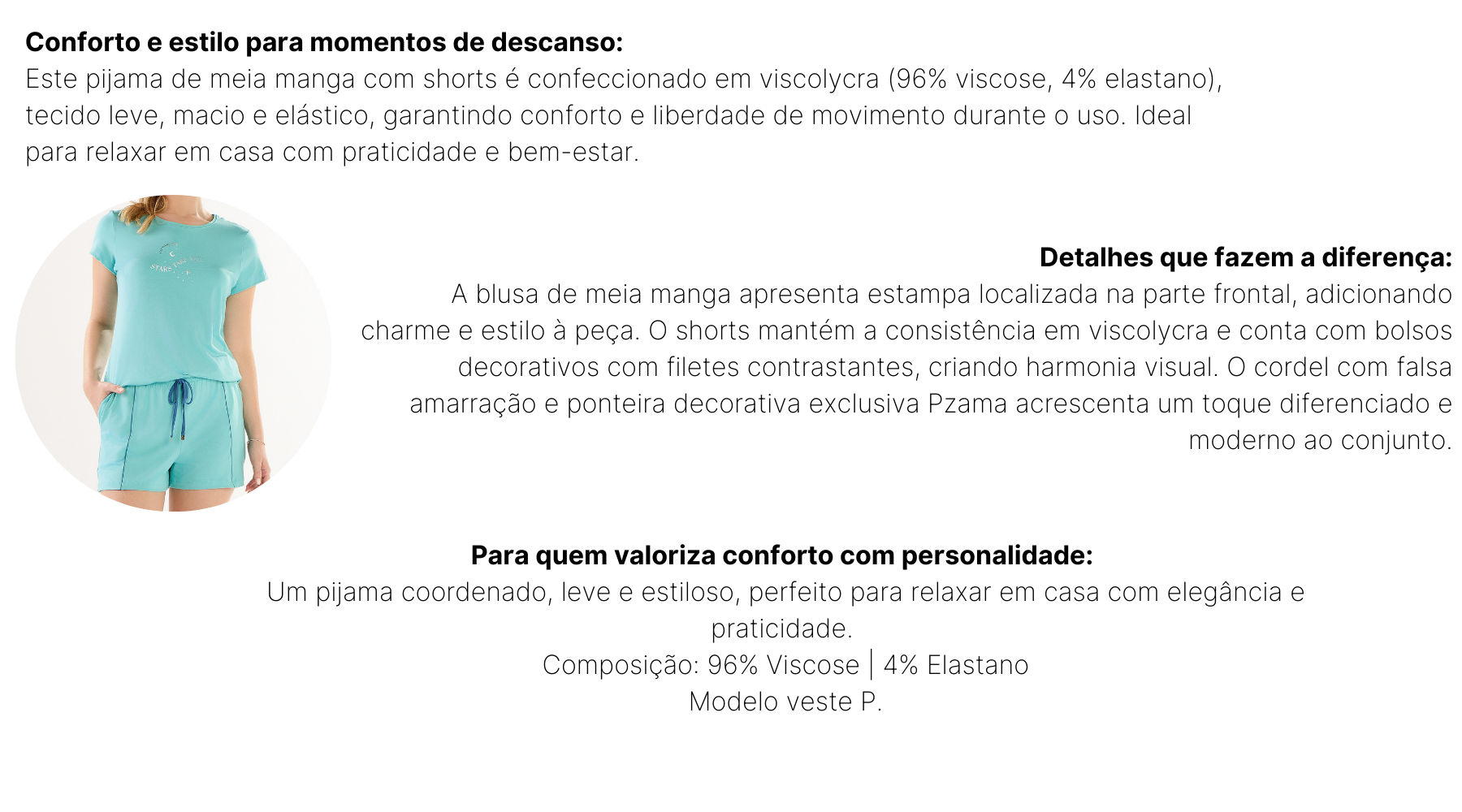 PIJAMA FEMININO MEIA MANGA COM SHORTS EM VISCOLYCRA