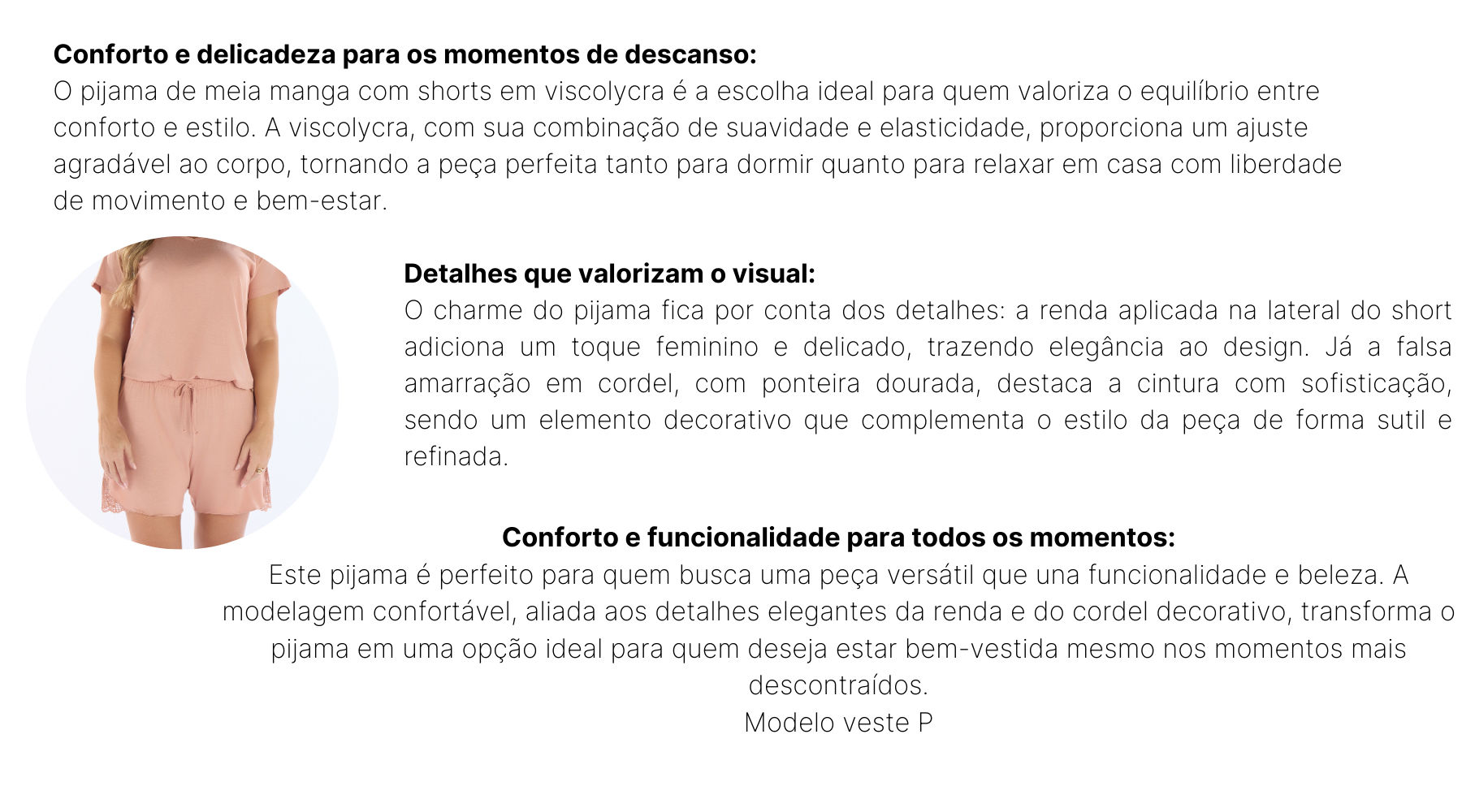 Início LINHAS PIJAMA MEIA MANGA COM SHORTS EM VISCOLYCRA FEMININO