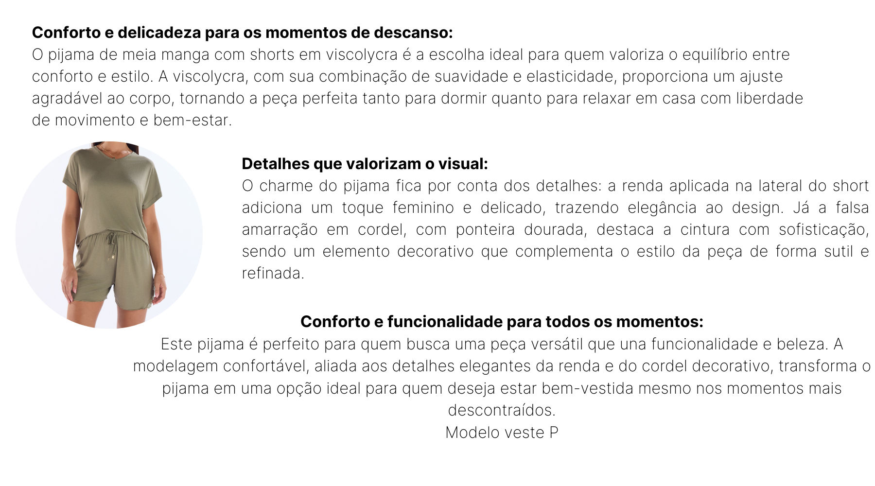 Início LINHAS PIJAMA MEIA MANGA COM SHORTS EM VISCOLYCRA FEMININO
