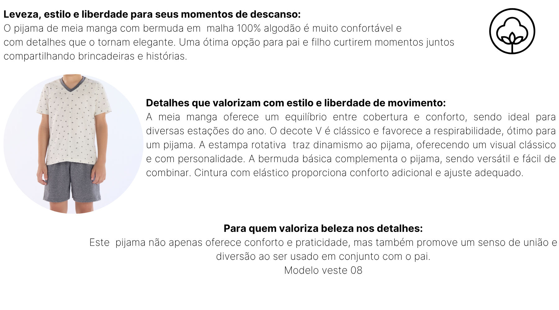 Início KIDS PIJAMA MEIA MANGA EM MALHA ROTATIVA COM BERMUDA EM MEIA MALHA MASCULINO