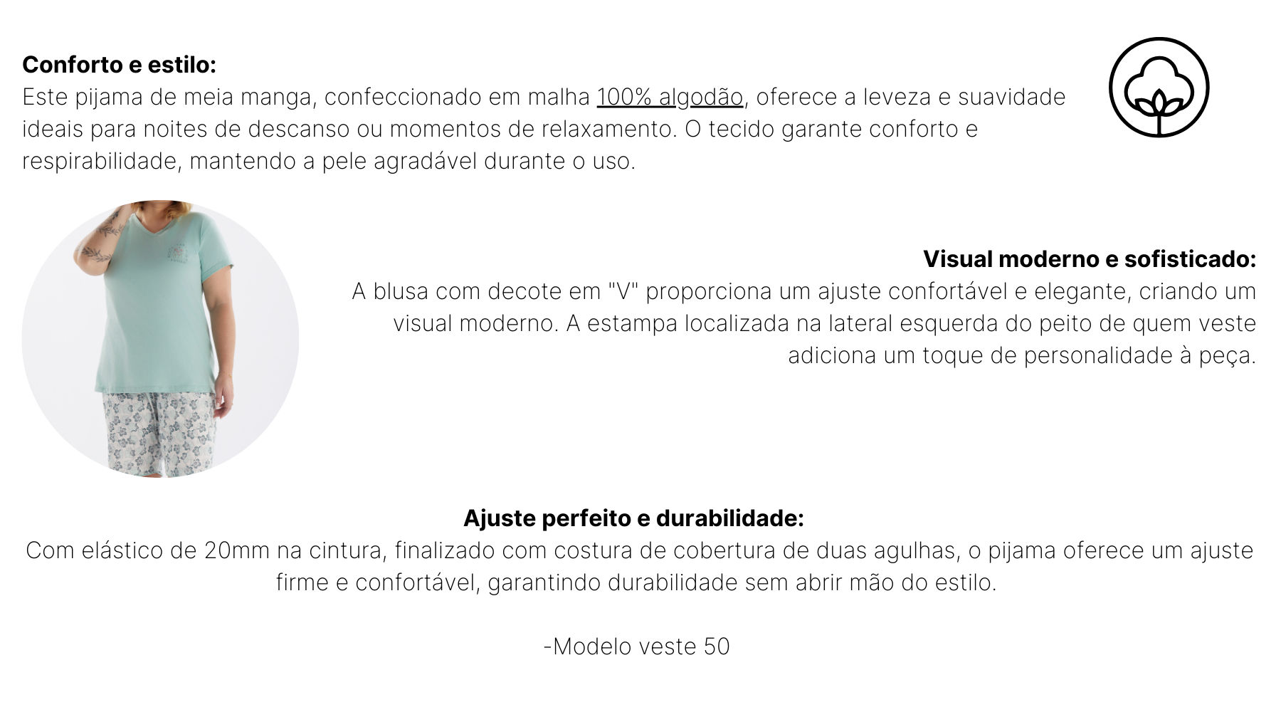 Excelente o pijama. Tecido de qualidade e atende ao que foi anunciado.