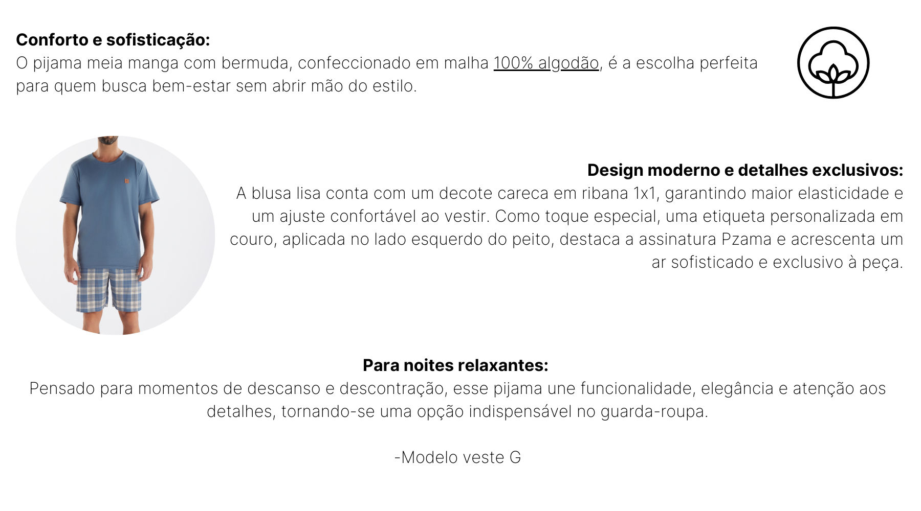 Início MASCULINO PIJAMA MEIA MANGA EM MEIA MALHA COM BERMUDA EM MALHA ROTATIVA MASCULINO