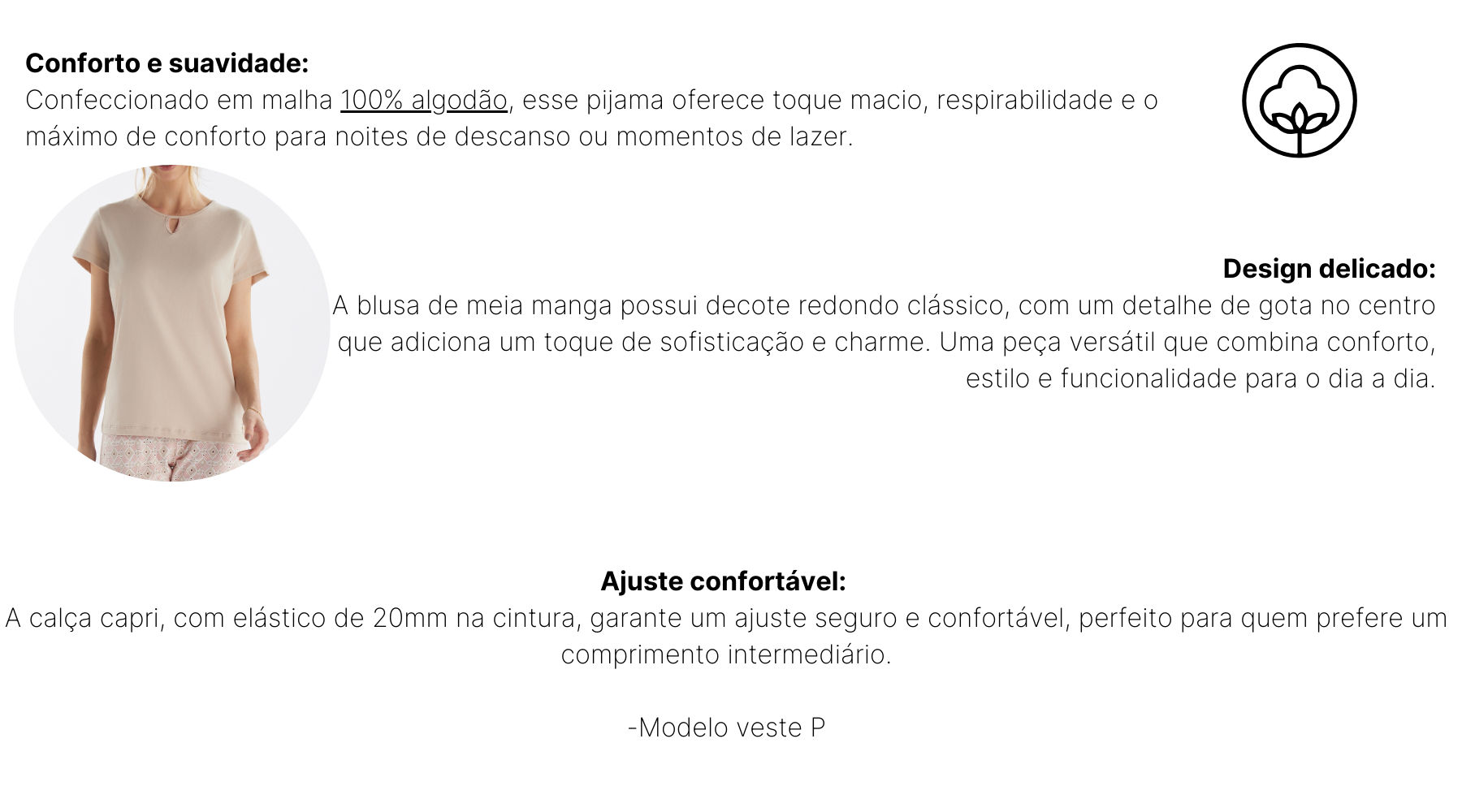 Início FEMININO PIJAMA MEIA MANGA EM MEIA MALHA COM CAPRI EM MALHA ROTATIVA FEMININO