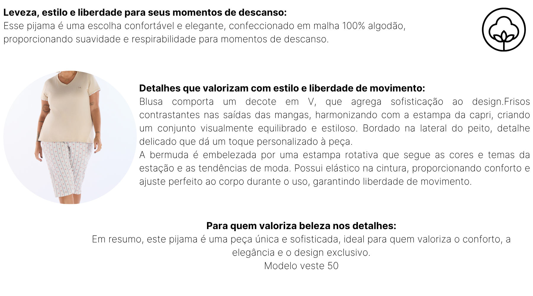 Início PLUS SIZE PIJAMA MEIA MANGA EM MEIA MALHA COM CAPRI EM MALHA ROTATIVA FEMININO