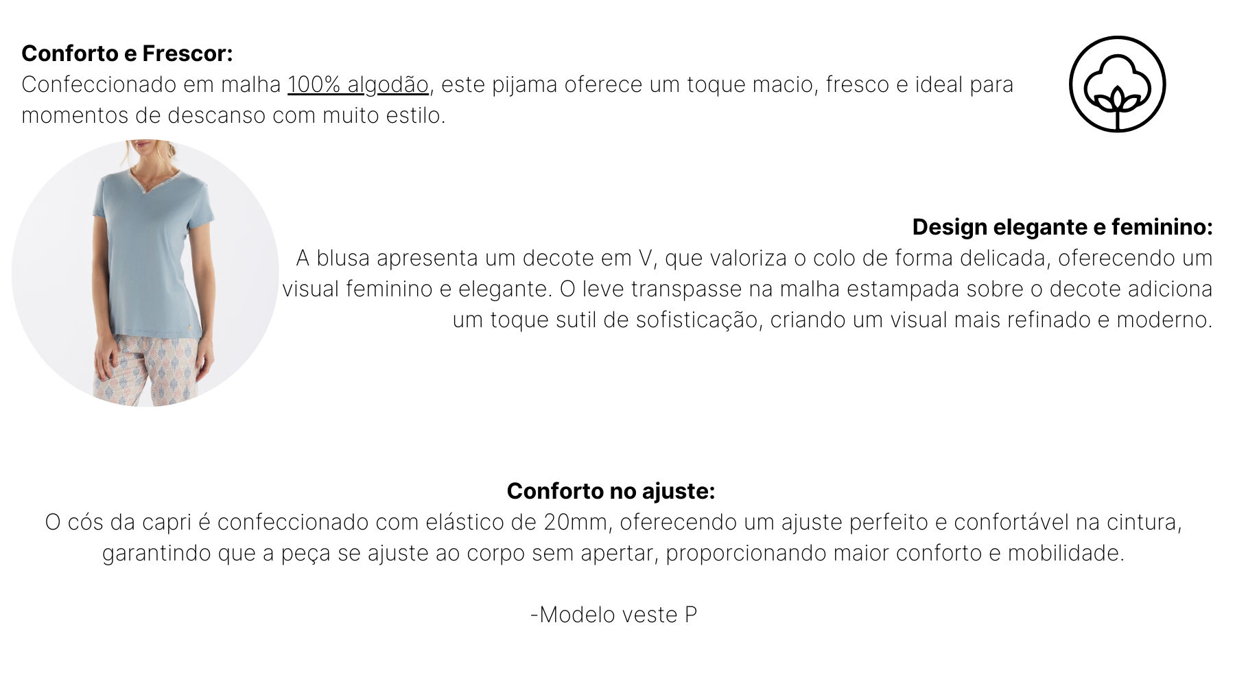 PIJAMA MEIA MANGA EM MEIA MALHA COM CAPRI EM MALHA ROTATIVA FEMININO