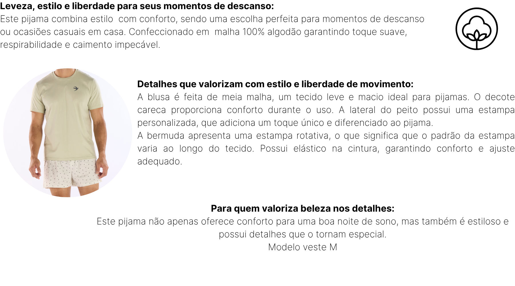 Início MASCULINO PIJAMA MEIA MANGA EM MEIA MALHA COM SAMBA CANÇÃO EM MALHA ROTATIVA MASCULINO