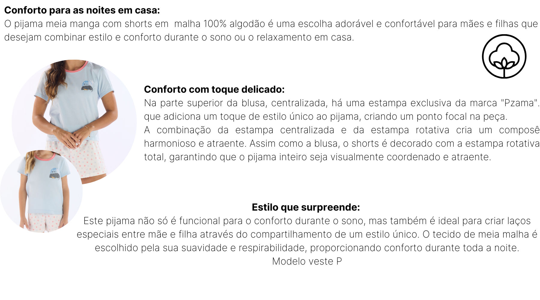 PIJAMA MEIA MANGA EM MEIA MALHA COM SHORTS EM MALHA ROTATIVA FEMININO